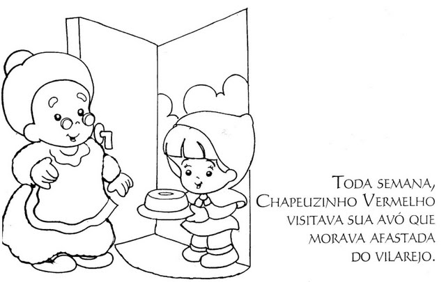 Historinha da Chapeuzinho vermelho para colorir, pintar, imprimir! Chapeuzinho Vermelho para colorir desenhos!